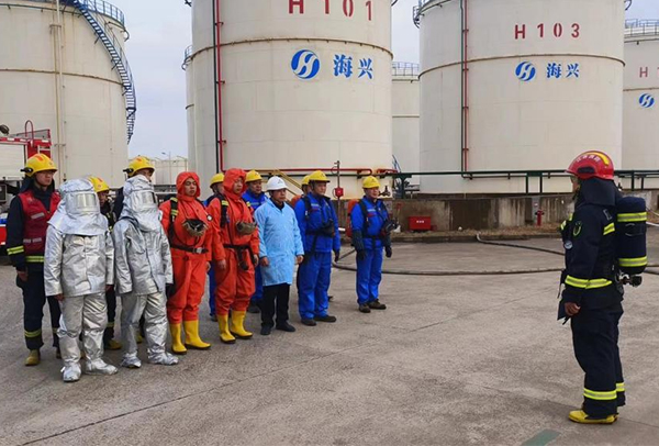 輝煌公司聯(lián)合大豐港區(qū)消防大隊開展消防安全應急演練