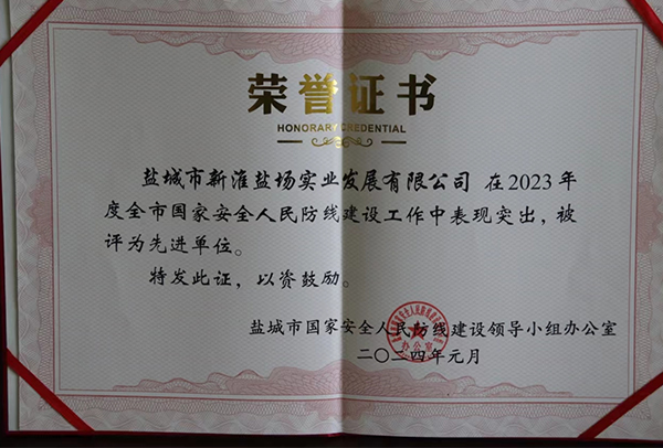 喜報(bào)!新灘鹽場(chǎng)榮獲“鹽城市2023年度國(guó)家安全人民防線 建設(shè)先進(jìn)單位”榮譽(yù)稱號(hào)