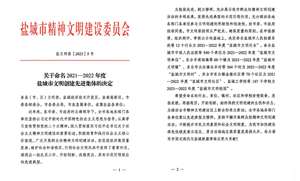 近日,市精神文明建設(shè)委員會印發(fā)《關(guān)于命名2021—2022年度鹽城市文明創(chuàng)建先進集體的決定》,鹽城市海興集團被授予“鹽城市文明單位”榮譽稱號。2023-10-13 -