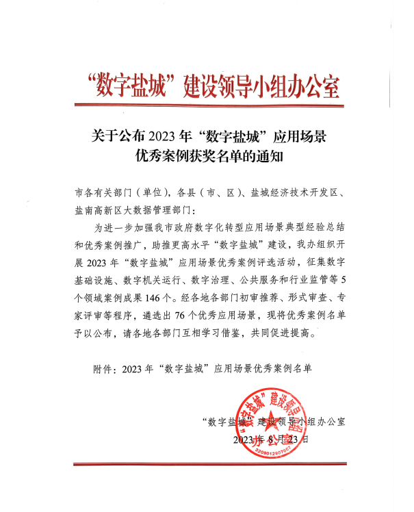 近日,“數(shù)字鹽城”建設(shè)領(lǐng)導(dǎo)小組辦公室公布了2023年“數(shù)字鹽城”應(yīng)用場景優(yōu)秀案例名單,海興集團(tuán)“智慧工地指揮中心”案例獲評一等獎(jiǎng)。2023-09-07 -