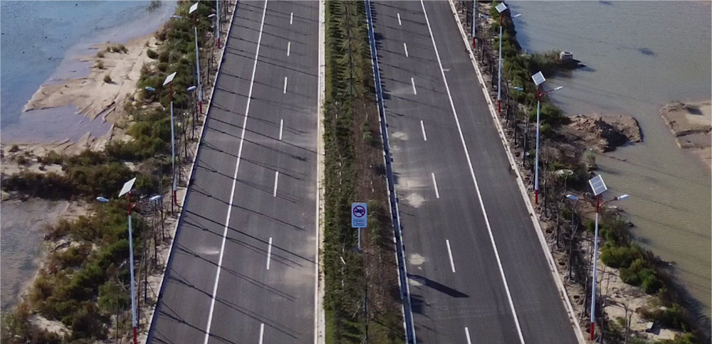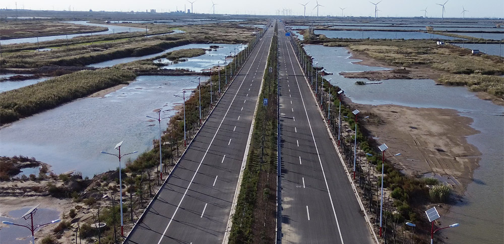 濱響大道規(guī)劃為黃海新區(qū)橫向主干道路,該項目分東、中、西三段實施,東起濱海港海堤,西至陳家港大道,道路全長45.5公里,規(guī)劃道路紅線寬60米,雙向六車道設計,設計速度60公里/小時,總投資約為35億元。作為黃海新區(qū)集疏運體系重要組成部分,濱響大道是策應市委、市政府“兩港兩城”建設、貫通濱海港區(qū)和響水港區(qū)的重要交通樞紐工程。該項目建成后將進一步完善新區(qū)路網(wǎng),有效提升產(chǎn)業(yè)空間布局,增強新區(qū)項目承載能力。